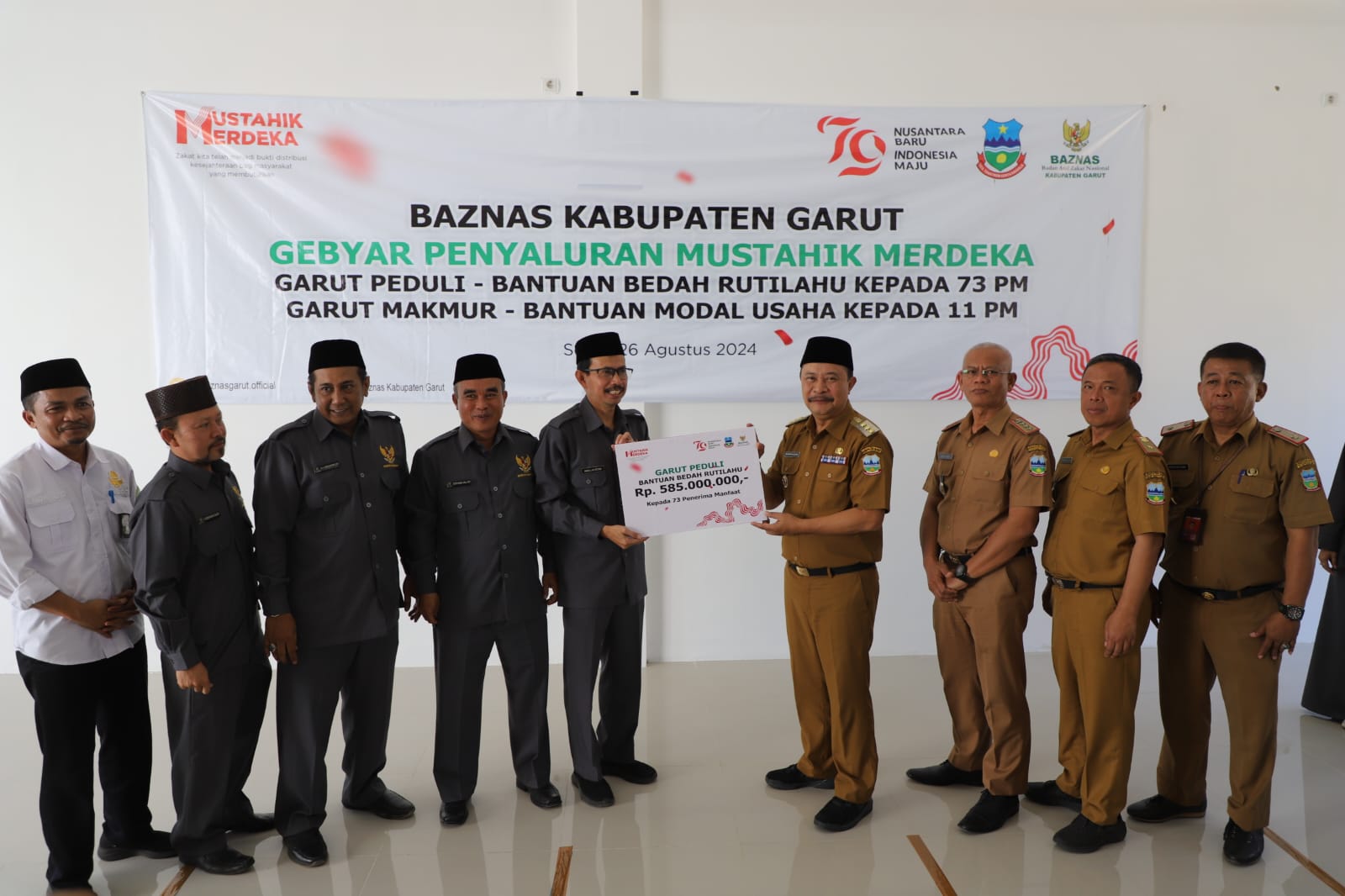 GARUT, 86News.co – Badan Amil Zakat Nasional (Baznas) Kabupaten Garut meluncurkan program bantuan bertajuk “Garut Peduli” dengan menyalurkan dana sebesar Rp622 juta. Program ini mencakup renovasi Rumah Tidak Layak Huni (Rutilahu) bagi 73 Penerima Manfaat (PM), dengan total bantuan sebesar Ro585 juta dan bantuan modal usaha melalui program “Garut Makmur” bagi 11 penerima manfaat lainnya dengan total bantuan Rp37 juta