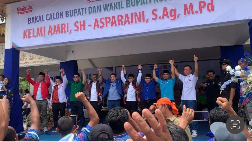 Sebelum melaksanakan pendaftaran, Tim Koalisi membacakan deklarasi dukungan terhadap Kelmi dan Asparaini untuk maju sebagai Bupati dan Wakil Bupati Rokan Hulu. Yang di bacakan oleh Ketua Koalisi Muhammad Aidi.