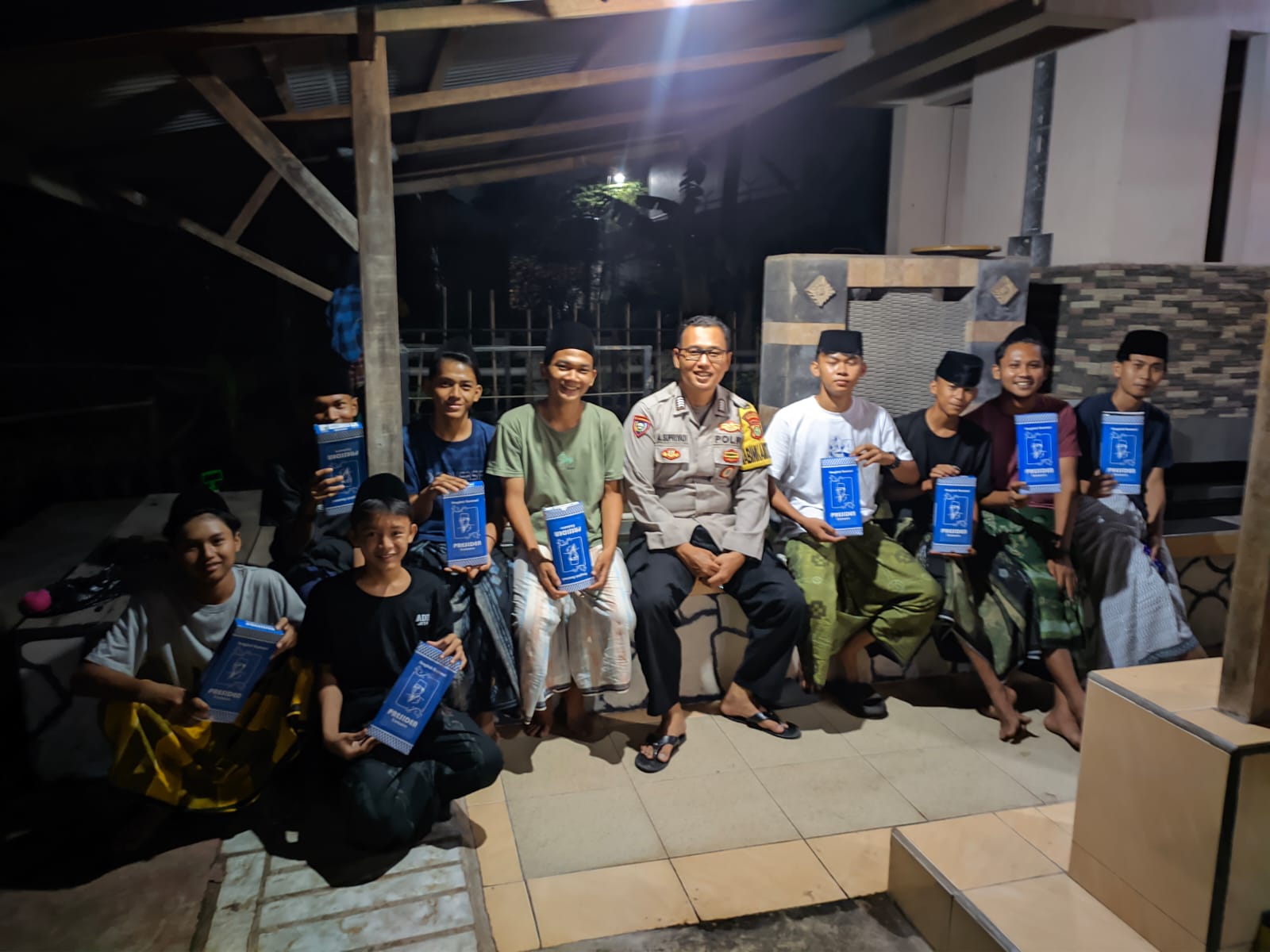 Selain menyampaikan himbauan kamtibmas, Bripka Supriyadi juga memberikan bantuan berupa 10 peci kepada para santri Pondok Pesantren Mursyidul Faoz.