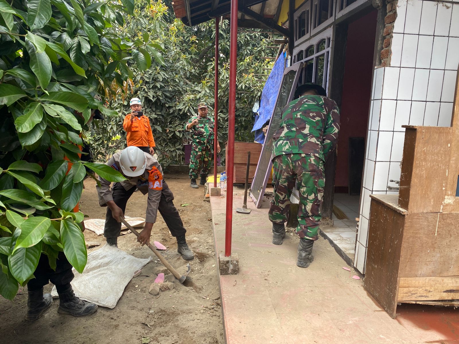 Garut, 86News.co – Polres Garut Bersama tim gabungan melanjutkan pembersihkan puing-puing pasca gempa bumi di Kecamatan Pasirwangi Kabupaten Garut. Sabtu (21/9/2024).