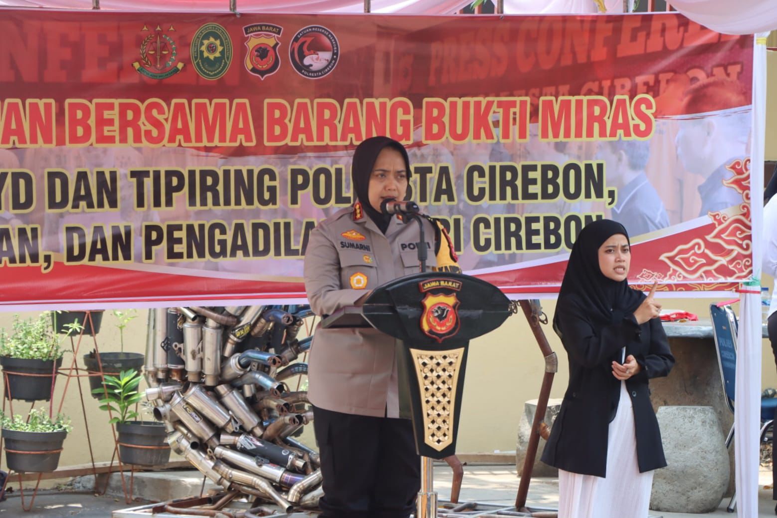 “Kegiatan ini merupakan pemusnahan bersama barang bukti miras hasil KRYD dan tipiring Polresta Cirebon, Kejaksaan dan Pengadilan Negeri Cirebon sebagai bentuk pertanggung jawaban dari kegiatan yang dilaksanakan untuk mencegah potensi gangguan kamtibmas di Kabupaten Cirebon,” ujar Kombes Pol Sumarni, S.I.K, S.H, M.H.