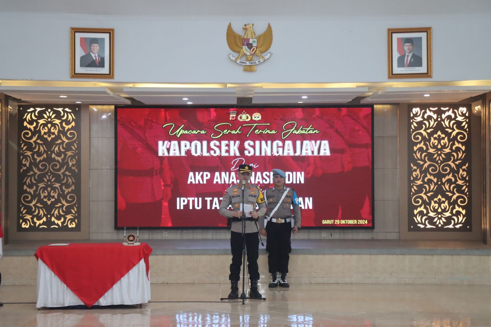 Garut, 86News.co – Kapolres Garut AKBP Mochamad Fajar Gemilang, S.I.K., M.H., M.I.K., pimpin upacara serah terima jabatan Kapolsek Singajaya di Aula Mumun Surachman Mapolres Garut. Selasa (29/10/2024).