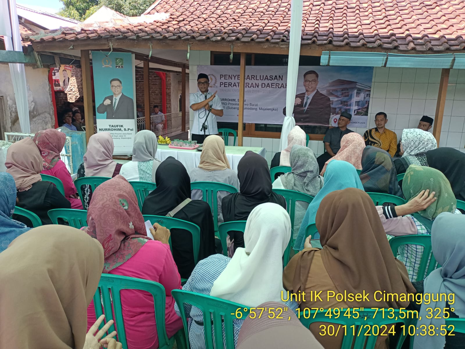 Bahwa kegiatan tersebut merupakan program Anggota DPRD Prov. Jabar Dapil XI Majalengka, Subang dan Sumedang dari Fraksi Partai Kebangkitan Bangsa ( PKB ) Sdr. TAUFIK NURROHIM, S.Psi untuk menyampaikan Peraturan Daerah yang telah di buat dan di sahkan agar di ketahui oleh warga masyarakat Kecamatan Cimanggung kabupaten Sumedang.