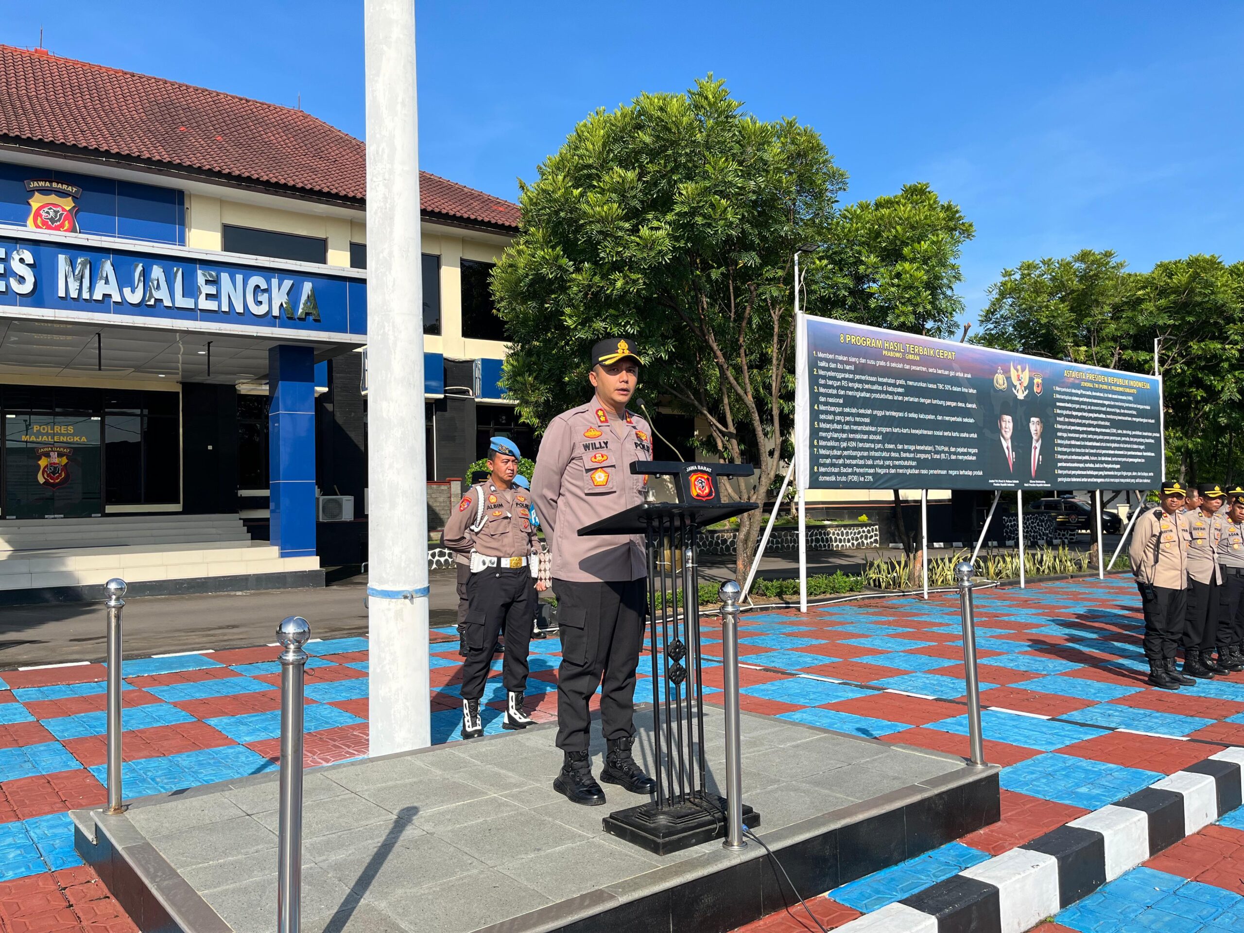 Dalam kesempatannya Kapolres Majalengka AKBP Willy Andrian menegaskan bahwa seluruh anggota Polri wajib melaksanakan pengamanan secara humanis dan tidak membawa senpi.