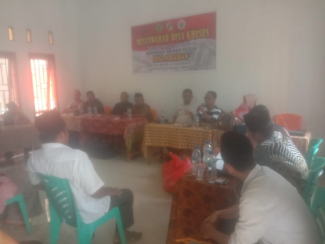 Adapun turut Hadir dalam Pembentukan Koperasi Merah Putih Desa Siraisan antara lain, Camat Ulu Barumun, Kepala desa Sangkot Hasibuan, Babinkamtibmas, Babinsa, Serta Warga Masyarakat Desa Siraisan.