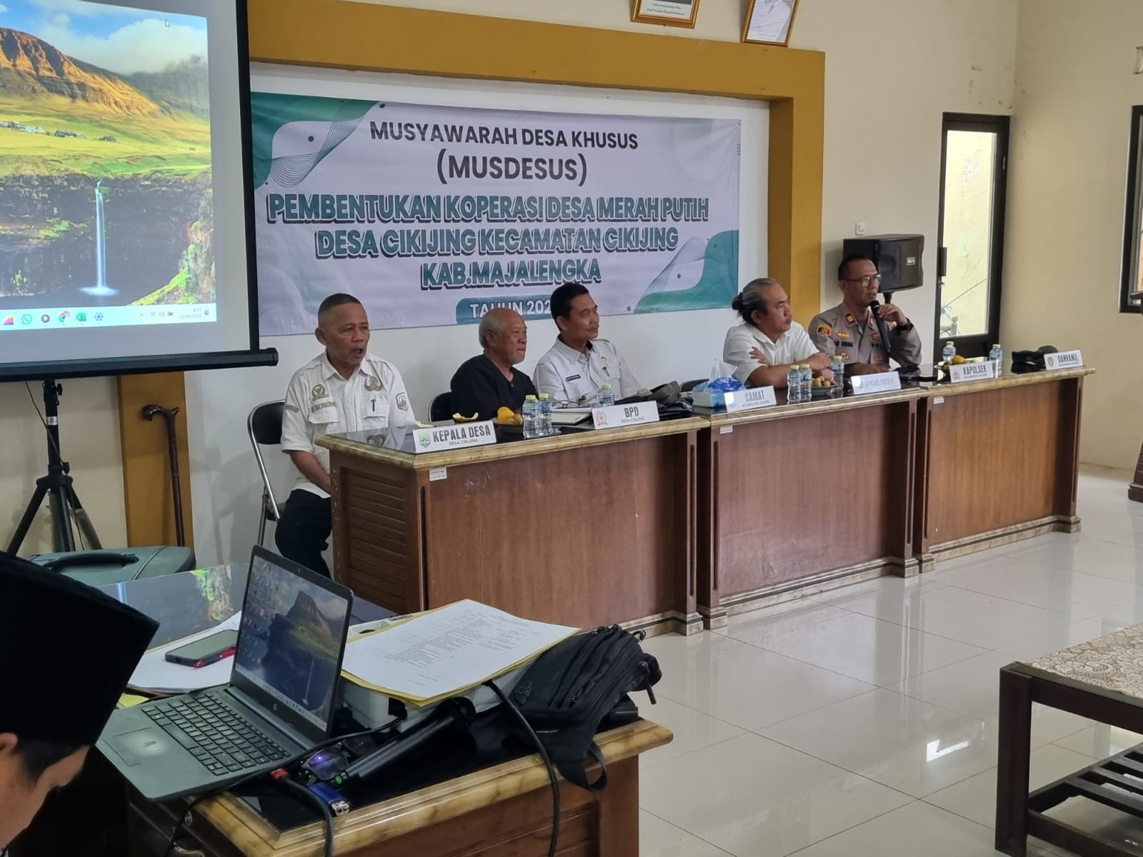Acara ini bertujuan untuk membahas dan meresmikan pembentukan Koperasi Desa Merah Putih, sebuah inisiatif yang diharapkan dapat meningkatkan kesejahteraan masyarakat desa. Kehadiran Kapolsek Cikijing dalam acara ini menunjukkan komitmen kepolisian dalam mendukung program-program yang bermanfaat bagi masyarakat.
