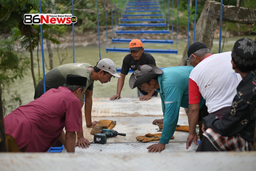86news co.Jembatan Gantung – Paris yang menghubungkan dua desa lintas provinsi—Desa Pasir Bungur, Kabupaten Lebak, Banten dan Desa Caringin, Kabupaten Sukabumi, Jawa Barat—kini tengah menjalani proses renovasi. Perbaikan jembatan ini dilakukan melalui kolaborasi antara Sinergi Foundation dan PT Paragon Technology and Innovation (Paragon Group), dengan dukungan penuh masyarakat setempat yang turut bergotong royong.
