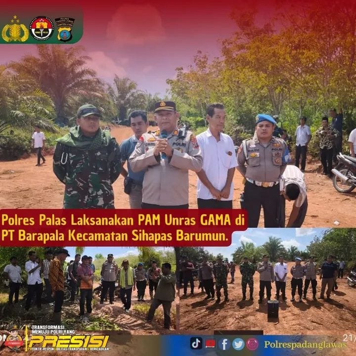 Kapolres Palas AKBP Dodik Yuliyanto, SIK, melalui Kasat Intelkam Polres Palas, AKP Sahala Harahap, menyampaikan tujuan dari Aksi Unras Koalisi Masyarakat GAMA Desa Padang Hasior Dolok dan Desa Paran Napa, Kecamatan Sihapas Barumun tersebut ke PT. Barapala. Tepatnya jalan Andege Desa Padang Hasior Dolok di Kecamatan Sihapas Barumun Kabupaten Palas.