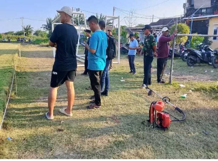 Persiapan turnamen dilakukan dengan membersihkan area Stadion Nasa milik Desa Kedung Pengawas, di lingkungan Perumahan Green New Residence, Jumat (1/7/25).