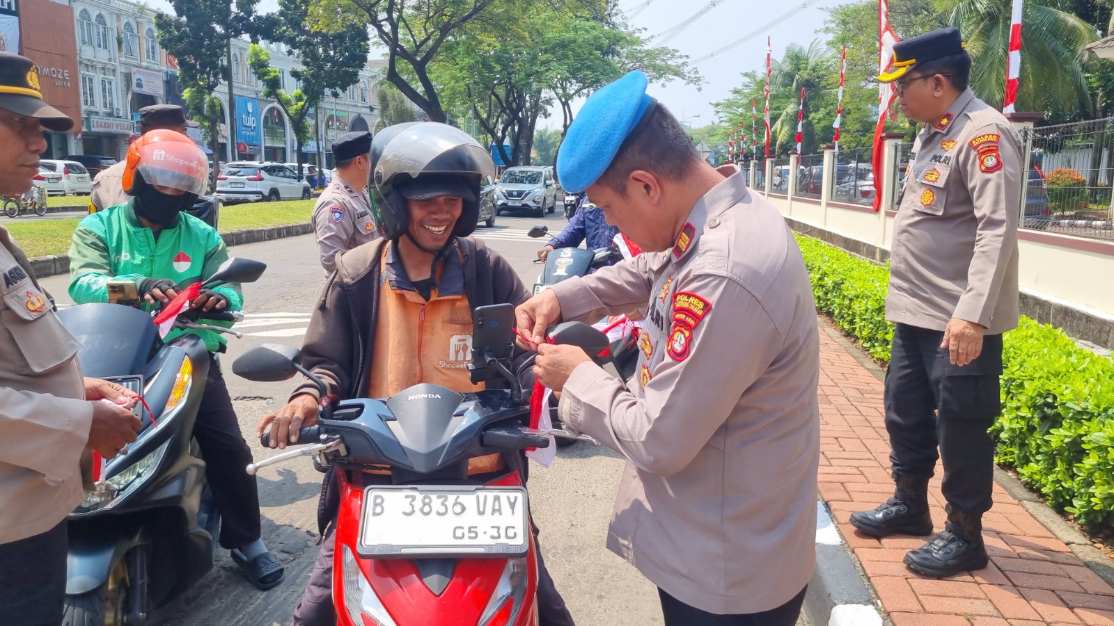 Sambut HUT RI ke-80, Polsek Kelapa Dua Bagikan Bendera Merah Putih Kepada Masyarakat