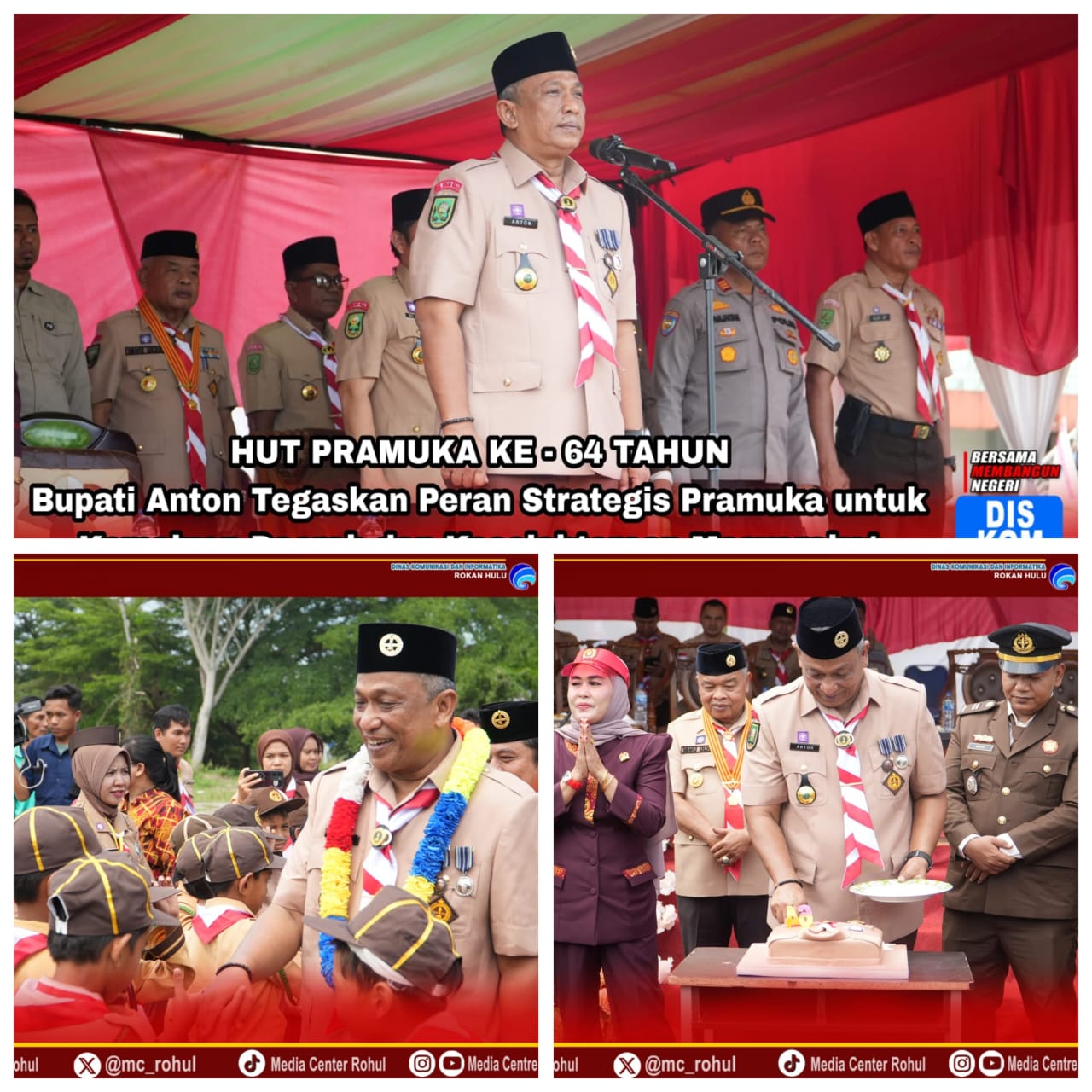 Rokan Hulu, 86News.co – Bupati Rokan Hulu Anton, ST, M.M, menegaskan pentingnya peran Gerakan Pramuka dalam membangun karakter generasi muda, memperkuat ketahanan bangsa, serta mendorong kesejahteraan masyarakat dalam peringatan Hari Jadi Pramuka ke-64 Tahun 2025 tingkat Kabupaten Rokan Hulu, di Lapangan Dataran Tinggi Pematang Baih, Desa Pematang Berangan, Kamis (14/08/2025)