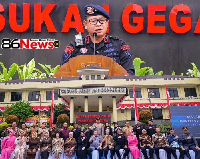 Bandung -86News co.-Komandan Korps Brimob Polri Komjen Pol. Imam Widodo memimpin Acara Peresmian Nama Gedung Mako Pasukan Gegana Korbrimob Polri dengan Nama “Jusuf Manggabarani”, yang diselenggarakan di Mako Pasukan Gegana Korbrimob Polri, Kelapadua, Depok, Cimanggis, Jawa Barat, Minggu(21/9/2025).