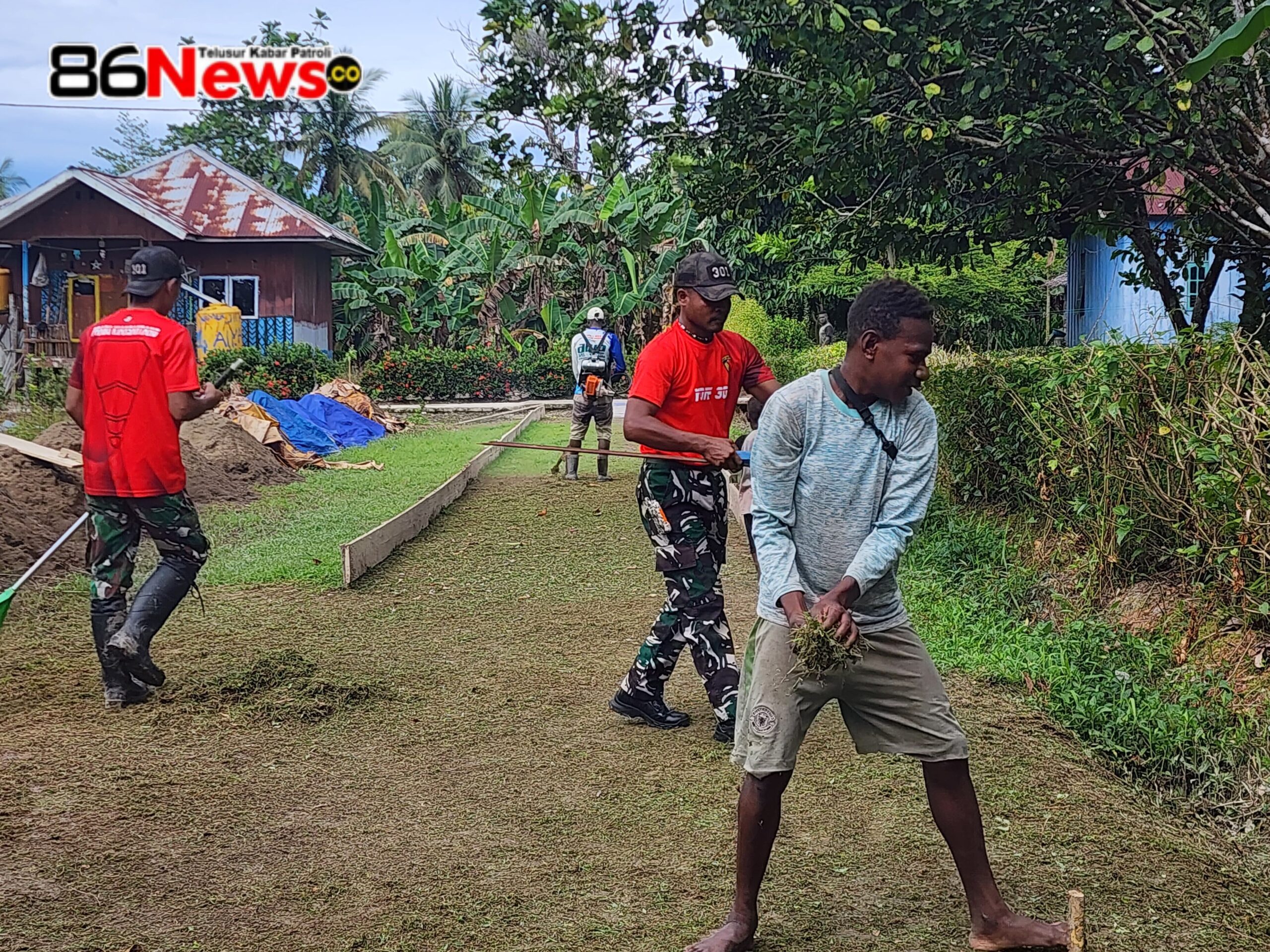 Timika, 86News.co – Satgas Pam Obvitnas Yonif 301/PKS Pos Jitas Dalam rangka meningkatkan kepedulian masyarakat terhadap pentingnya kebersihan dan semangat gotong royong, menggelar kegiatan Karya Bakti bersama masyarakat serta pembagian sembako di Kampung Kanmapri, Distrik Jita, Kabupaten Timika, Provinsi Papua Tengah. Selasa (04/11/2025)