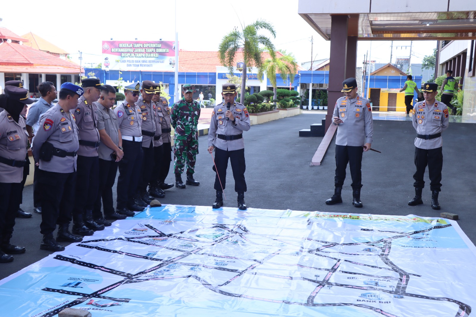 Dalam arahannya, Kapolres Jepara AKBP Erick menekankan pendekatan persuasif dan terukur kepada seluruh personel.