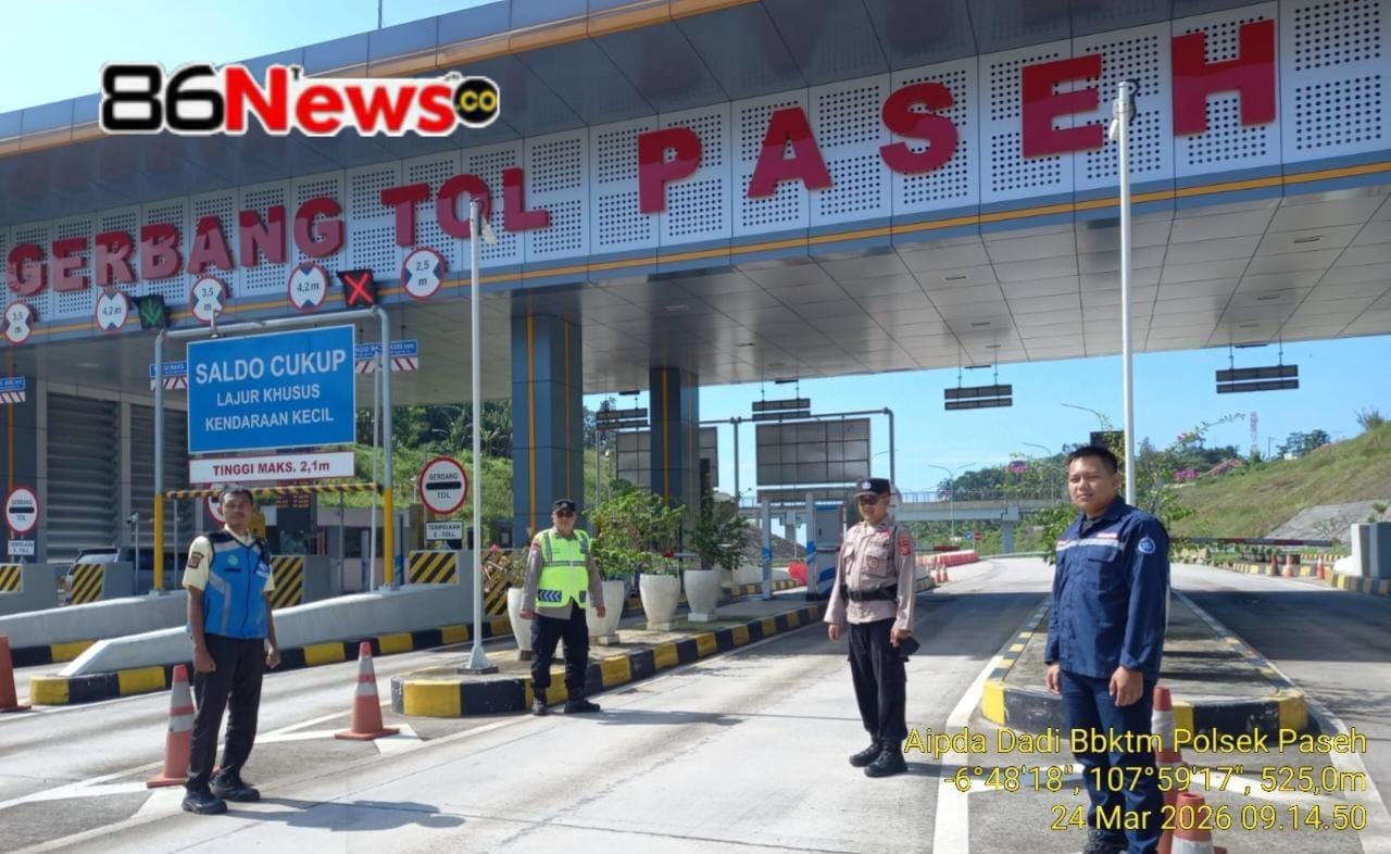 Sumedang -86News co.- Dalam rangka mendukung kelancaran arus mudik dan balik Lebaran, jajaran Polres Sumedang melaksanakan kegiatan pengaturan lalu lintas di Pertigaan Akses Tol Cimalaka, Desa Licin, Kecamatan Cimalaka, Kabupaten Sumedang, Selasa (24/3/2026) mulai pukul 09.30 WIB.