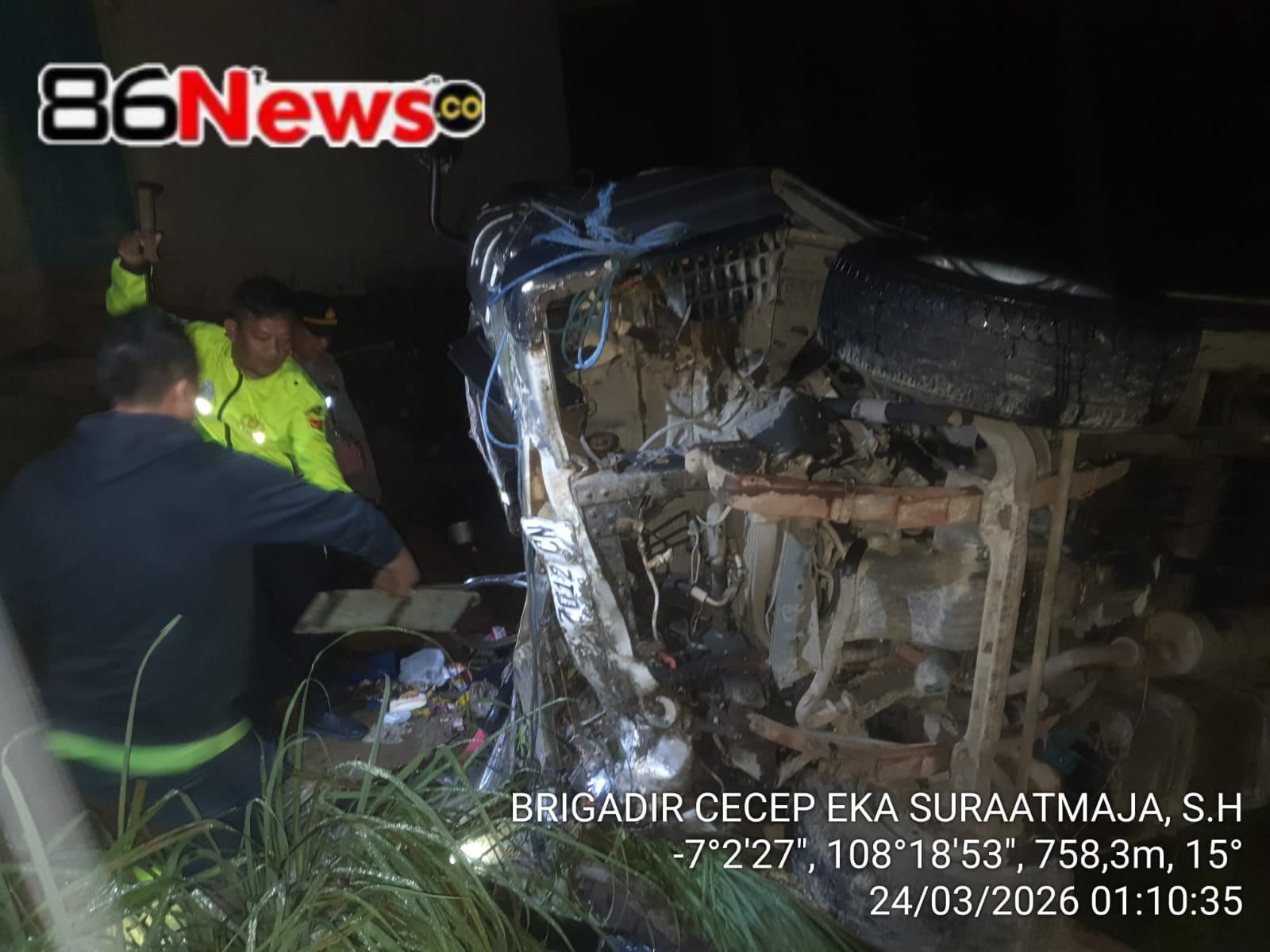 Majalengka -86News co. – Satuan Lalu Lintas Polres Majalengka Polda Jabar. tengah menangani insiden kecelakaan lalu lintas tunggal yang melibatkan satu unit kendaraan Isuzu Elf Microbus bernomor polisi Z 7012 CN. Peristiwa tragis tersebut terjadi di Jalan Raya Panjalu–Cikijing, tepatnya di Blok Maniis Tonggoh, Desa Maniis, Kecamatan Cingambul, Kabupaten Majalengka, pada Senin malam (23/3/2026) sekitar pukul 23.05 WIB.