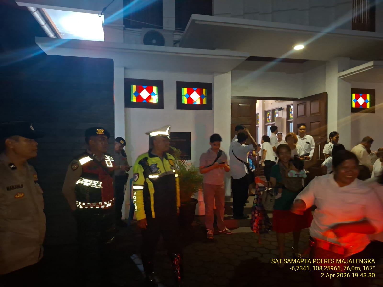 Majalengka -86News co.- Jajaran Kepolisian Resor Majalengka Polda jabar menunjukkan komitmen penuh dalam menjaga kondusifitas wilayah serta menjamin kemerdekaan beribadah bagi seluruh umat beragama. Pada Kamis malam (2/4/2026), personel gabungan TNI-Polri melaksanakan pengamanan ketat dalam rangka Kebaktian Kamis Putih yang merupakan rangkaian Ibadah dan Perayaan Paskah tahun 2026.