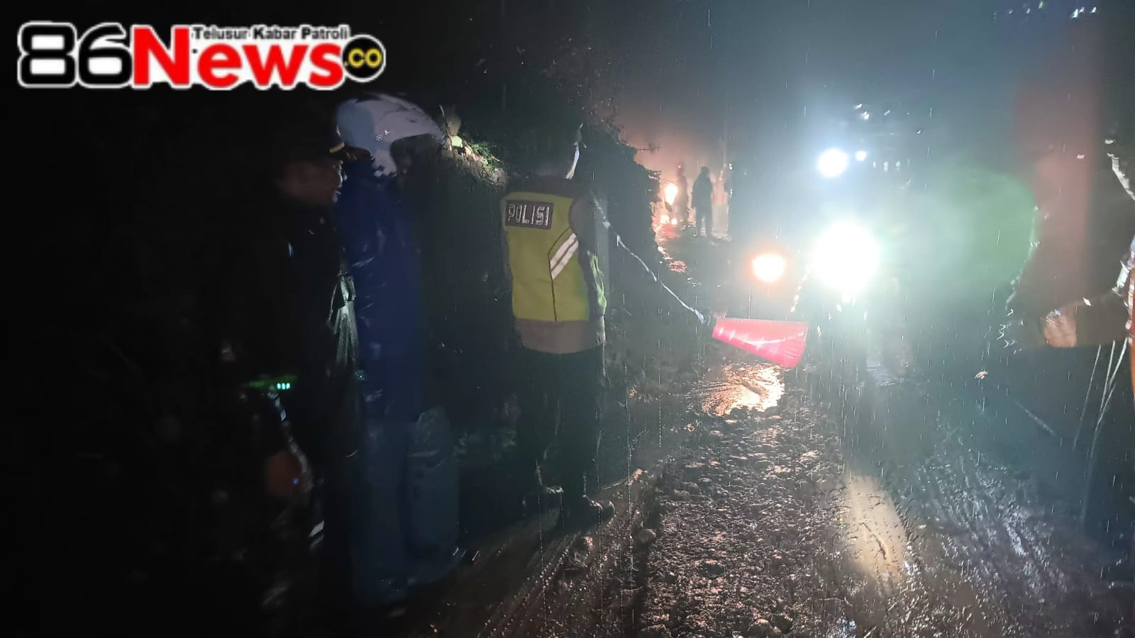 Petugas kepolisian bersama pihak terkait telah berada di lokasi untuk melakukan penanganan awal serta pengamanan di sekitar area longsor.