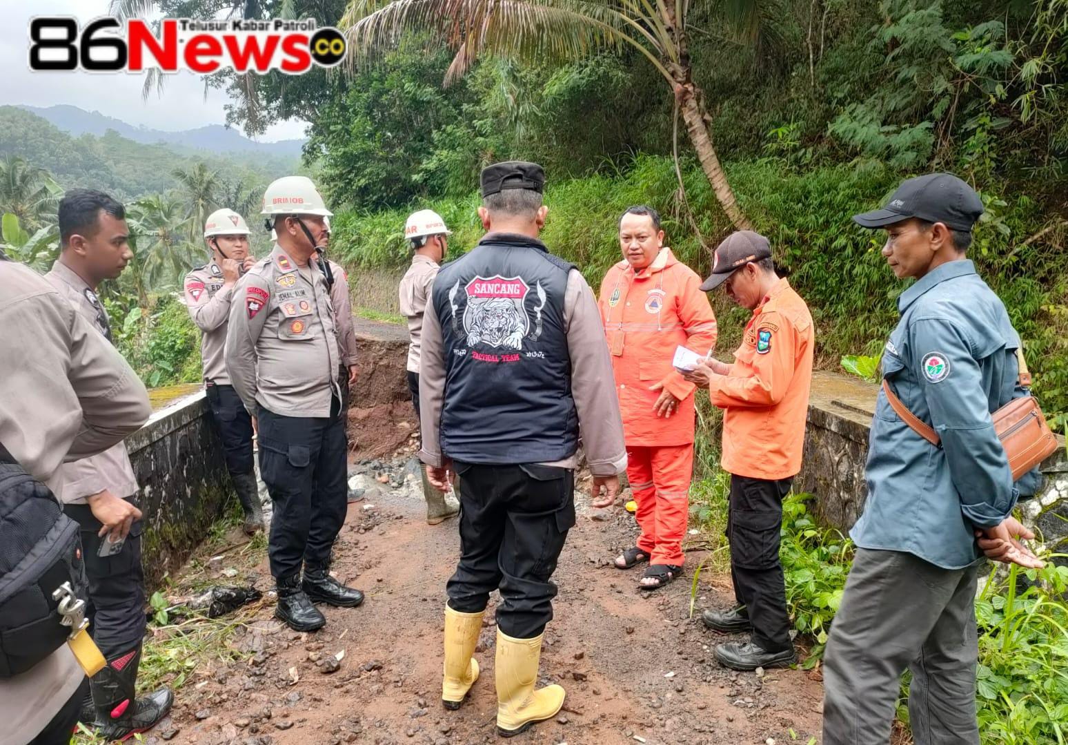 Garut, 86News.co – Polres Garut bersama Polsek Pakenjeng dan unsur terkait melaksanakan pengecekan jembatan penghubung antara Desa Pasirlangu dan Desa Tanjung Jaya yang terputus akibat hujan deras, Kamis (9/4/2026).