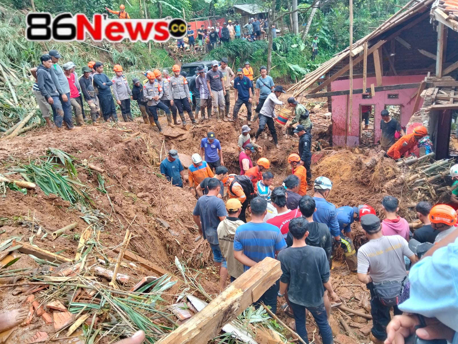 Sumedang -86News co – Aparat gabungan bersama relawan dan masyarakat melaksanakan kegiatan evakuasi material bencana alam longsor atau pergeseran tanah di Dusun Ciranggon RT 01/07, Desa Mekarahayu, Kecamatan Sumedang Selatan, Kabupaten Sumedang, Kamis (09/04/2026).