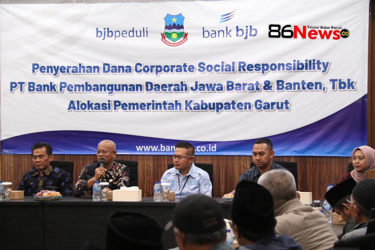 GARUT, 86News.co – PT Bank Pembangunan Daerah Jawa Barat & Banten, Tbk (Bank BJB) menyerahkan dana Corporate Social Responsibility (CSR) tahun anggaran 2024 bagi 22 Dewan Kemakmuran Masjid (DKM) se-Kabupaten Garut. Penyerahan bantuan ini dibuka secara resmi oleh Sekretaris Daerah (Sekda) Kabupaten Garut, Nurdin Yana, di Aula Lt. 3 BJB Kantor Cabang Garut, Jalan Ahmad Yani, Kecamatan Garut Kota, Jumat (10/4/2026).