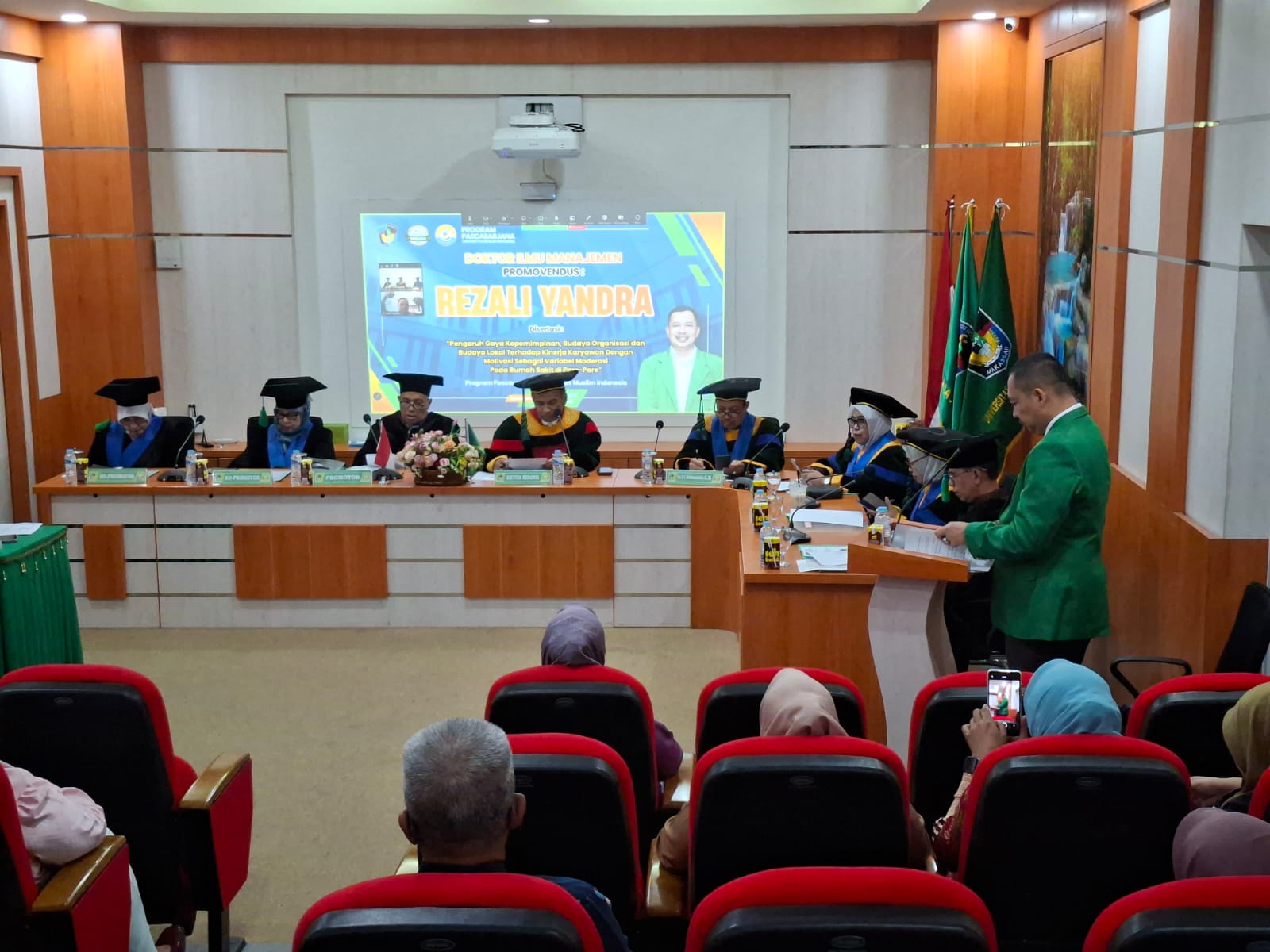 Gelar uji kompetensi dipimpin Direktur PPs Umi makassar Prof Dr.H.La Ode Husen SH.M.Hum., dengan penyanggah Prof Dr.Suriyanti.SE.MM,. Prof Dr.Ramlawati,SE.MM., Prof.Dr.H.Mahfudnurnajamuddin SE.MM., Prof.Dr.Baharuddin Semmaila SE.MM.,Prof Dr.Buyung Sarita,SE M.Si.Ph.D, sementara bertindak sebagai Promotor Prof Dr H.Salim Basalamah SE M.Si didampingi Prof Dr.Sukmawati SE.MM dan Prof Dr.Hj.Syamsu Nujum SE.M.Si.Pada bagian lain dari pemaparan Rezali Yandra mengungkapkan dalam konteks rumah sakit, kondisi ideal yang diharapkan adalah terciptanya lingkungan kerja yang profesional, kolaboratif dan berorientasi pada pada pelayanan prima, karena kinerja pegawai yang optimal akan berdampak langsung pada kualitas pelayanan kesehatan,bkepuasan pasien serta reputasi institusi.