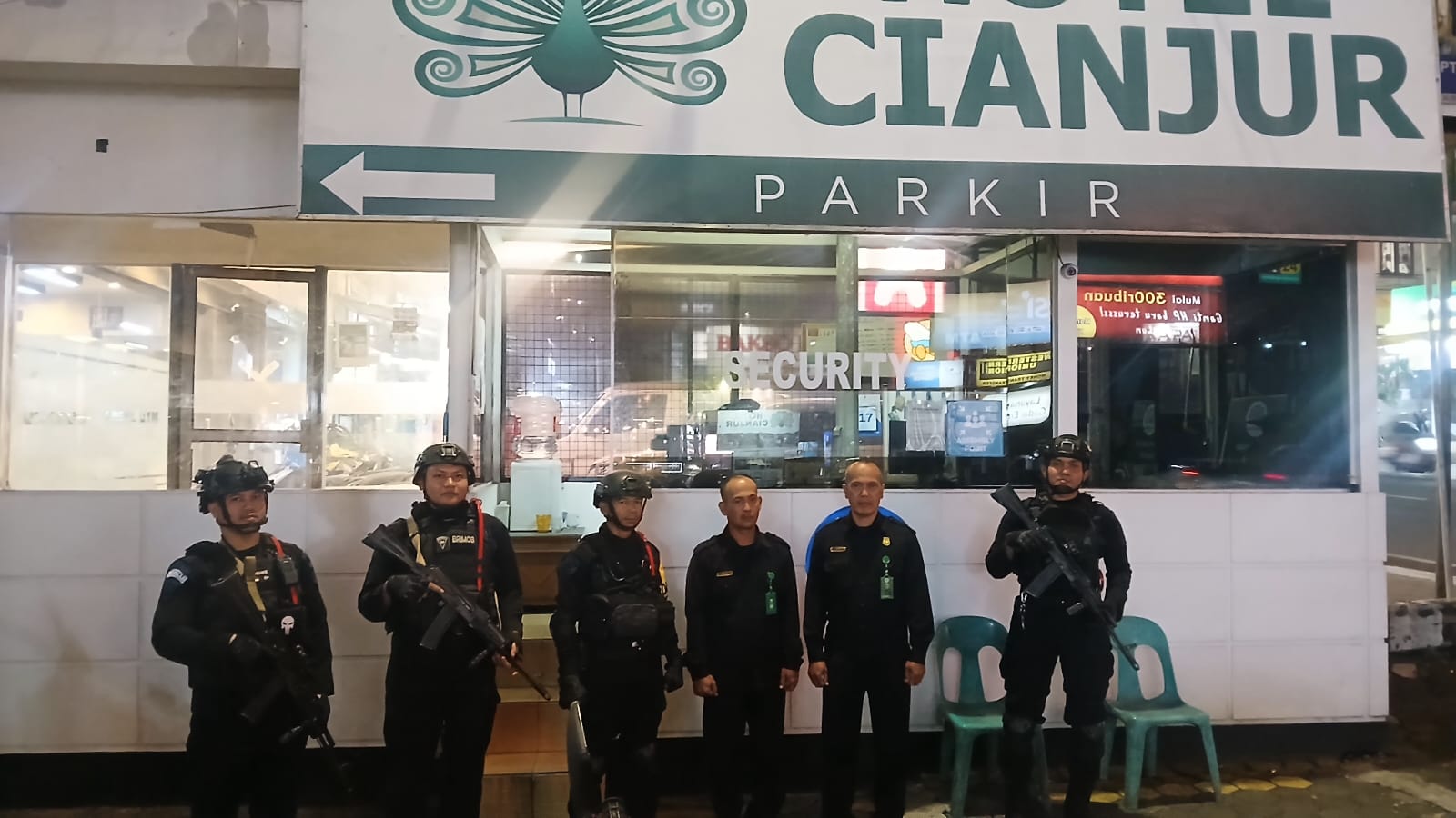 Selanjutnya, pada pukul 19.28 WIB, tim patroli bergerak menuju salah satu titik strategis, yaitu Hotel Cianjur. Di lokasi ini, personel melaksanakan patroli dialogis guna memastikan situasi keamanan tetap terjaga serta memberikan rasa aman kepada masyarakat dan pengunjung.