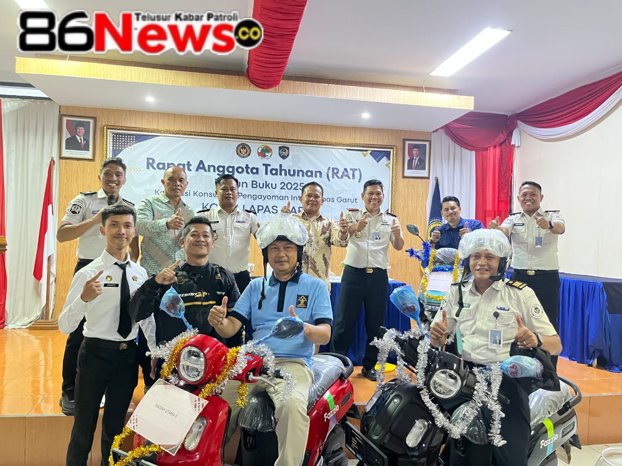 Garut, 86News.co – Kegiatan Rapat Anggota Tahunan (RAT) Tahun Buku 2025 Koperasi Konsumen Pengayoman Intan Lapas Garut berlangsung meriah dan penuh antusiasme pada Selasa, 14 April 2026, bertempat di Aula Lapas Garut. Kegiatan ini dihadiri oleh Kepala Lapas Garut, Rusdedy, jajaran pengurus dan pengawas koperasi, Ketua PKP-RI Kabupaten Garut Drs. Dadang Argo P, M.M, Sekretaris Dinas Koperasi dan UKM Kabupaten Garut Erni Herdiani, S.IP., M.M, serta seluruh anggota koperasi.