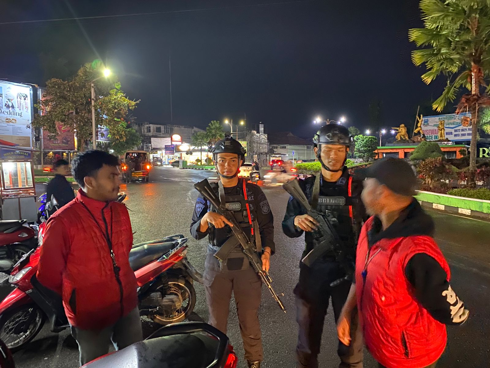Patroli berlanjut ke Bundaran Simpang Lima pada pukul 21.10 WIB. Di sana, anggota berdialog langsung dengan juru parkir, memberikan edukasi dan himbauan agar tidak terlibat dalam aktivitas premanisme serta turut menjaga ketertiban lingkungan.