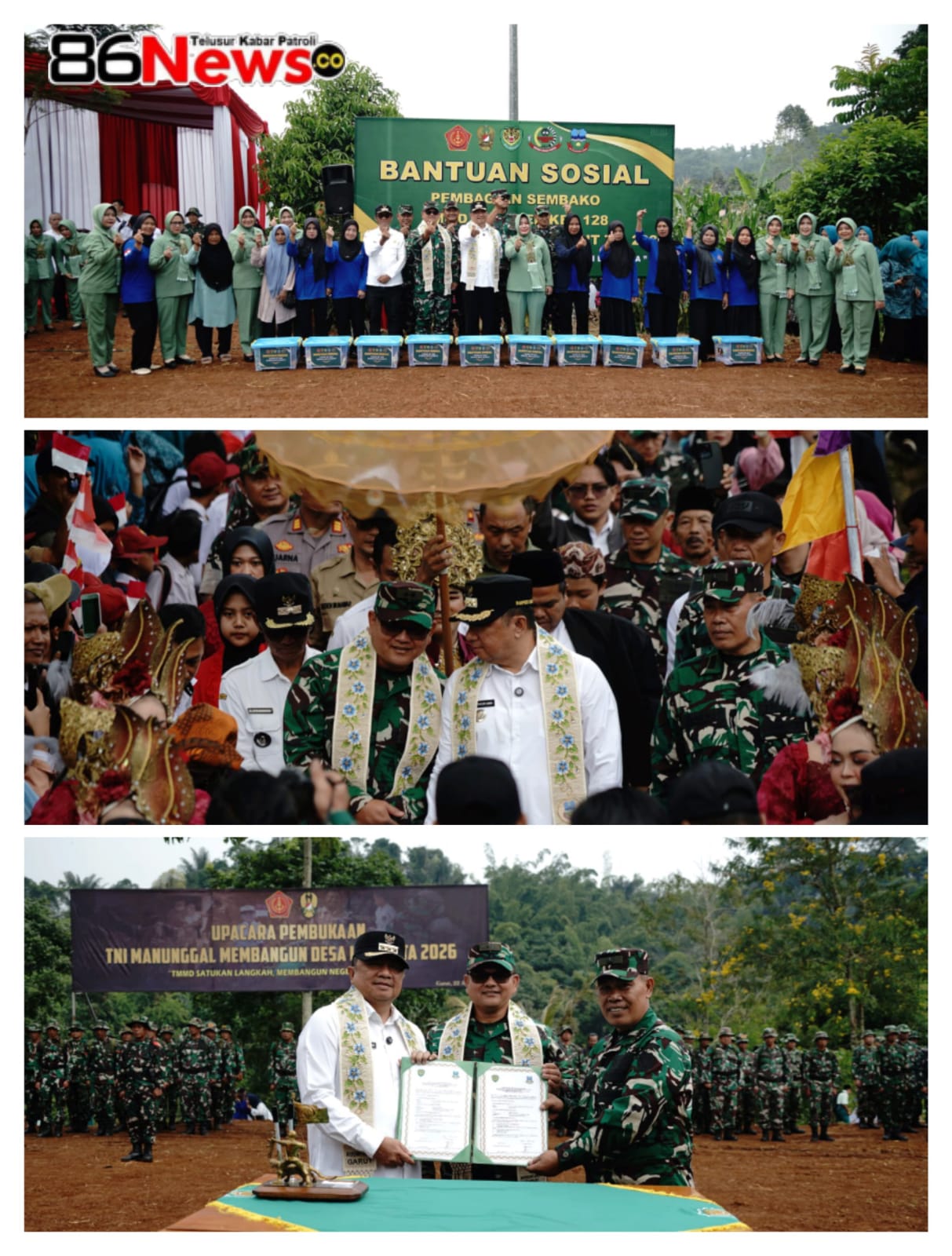 GARUT, 86News.co – Bupati Garut, Abdusy Syakur Amin, menghadiri secara langsung pembukaan program TNI Manunggal Membangun Desa (TMMD) ke-128 Tahun 2026 yang dilaksanakan di Lapangan Situ Ciranca, Desa Mekarmulya, Kecamatan Malangbong, Rabu (22/4/2026).