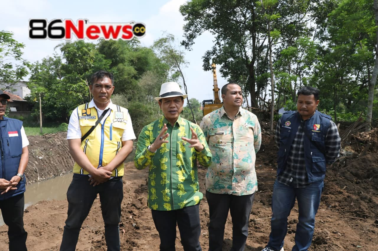 Kabupaten Bandung – 86News co.- Bupati Bandung Dadang Supriatna meninjau langsung progres normalisasi Sungai Cisunggalah hari ketiga yang dikerjakan secara pentahelix, di Desa Cibodas Kecamatan Solokanjeruk, Kabupaten Bandung, Kamis (23/4/2026).
