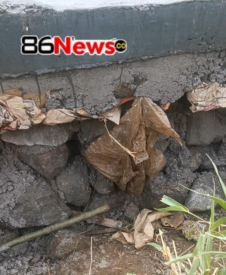 Salah satu kejanggalan yang paling terlihat adalah jenis material yang digunakan. Berdasarkan pengamatan warga, batu yang digunakan untuk menyusun tembok ini bukanlah batu kali yang keras, padat, dan berkualitas baik.