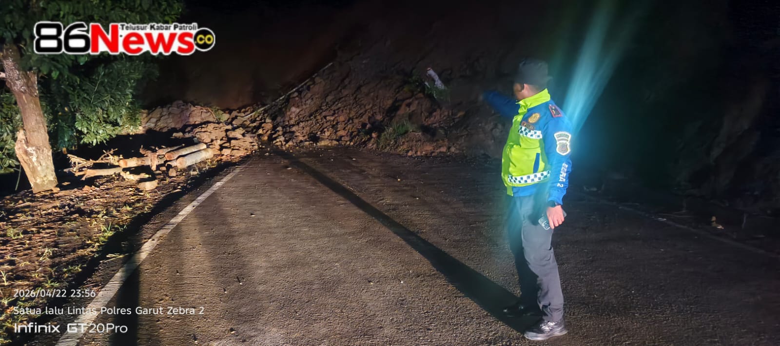 Garut, 86News.co – Bencana tanah longsor terjadi di Jalan Raya Provinsi Bungbulang–Caringin, tepatnya di Desa Wangunjaya, Kecamatan Bungbulang, Kabupaten Garut, pada Rabu (22/4/2026) sekitar pukul 00.00 WIB. Peristiwa ini mengakibatkan akses utama penghubung Kecamatan Bungbulang menuju Caringin dan Cisewu terputus total.