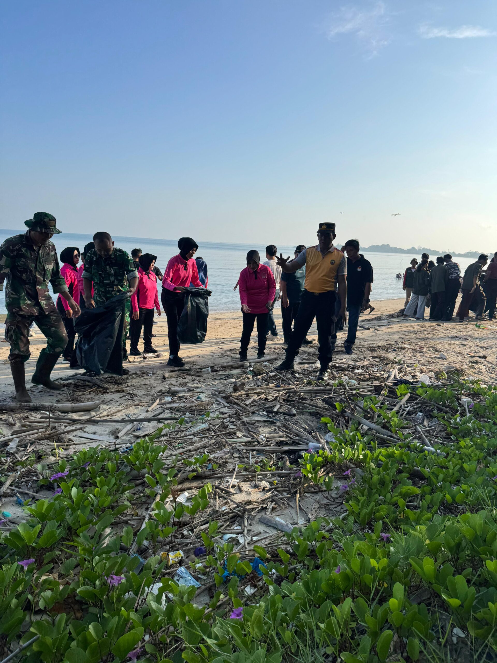 Sejak dimulainya kegiatan, para peserta tampak antusias memunguti sampah yang berada di sepanjang bibir pantai. Sinergitas yang terbangun antara TNI-Polri, perangkat desa, relawan, dan masyarakat menunjukkan kekompakan yang solid dalam menjaga kebersihan lingkungan.