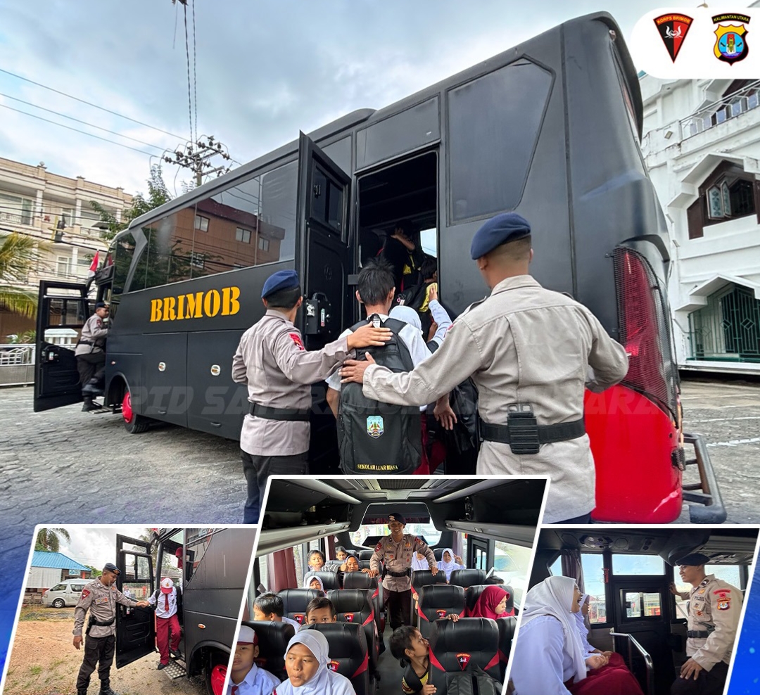 Tarakan, 86News.co — Wujud kepedulian terhadap dunia pendidikan, khususnya bagi anak-anak berkebutuhan khusus, kembali ditunjukkan oleh personel Satuan Brimob Polda Kalimantan Utara melalui program bus gratis antar-jemput pelajar di Sekolah Luar Biasa (SLB) Negeri Tarakan.
