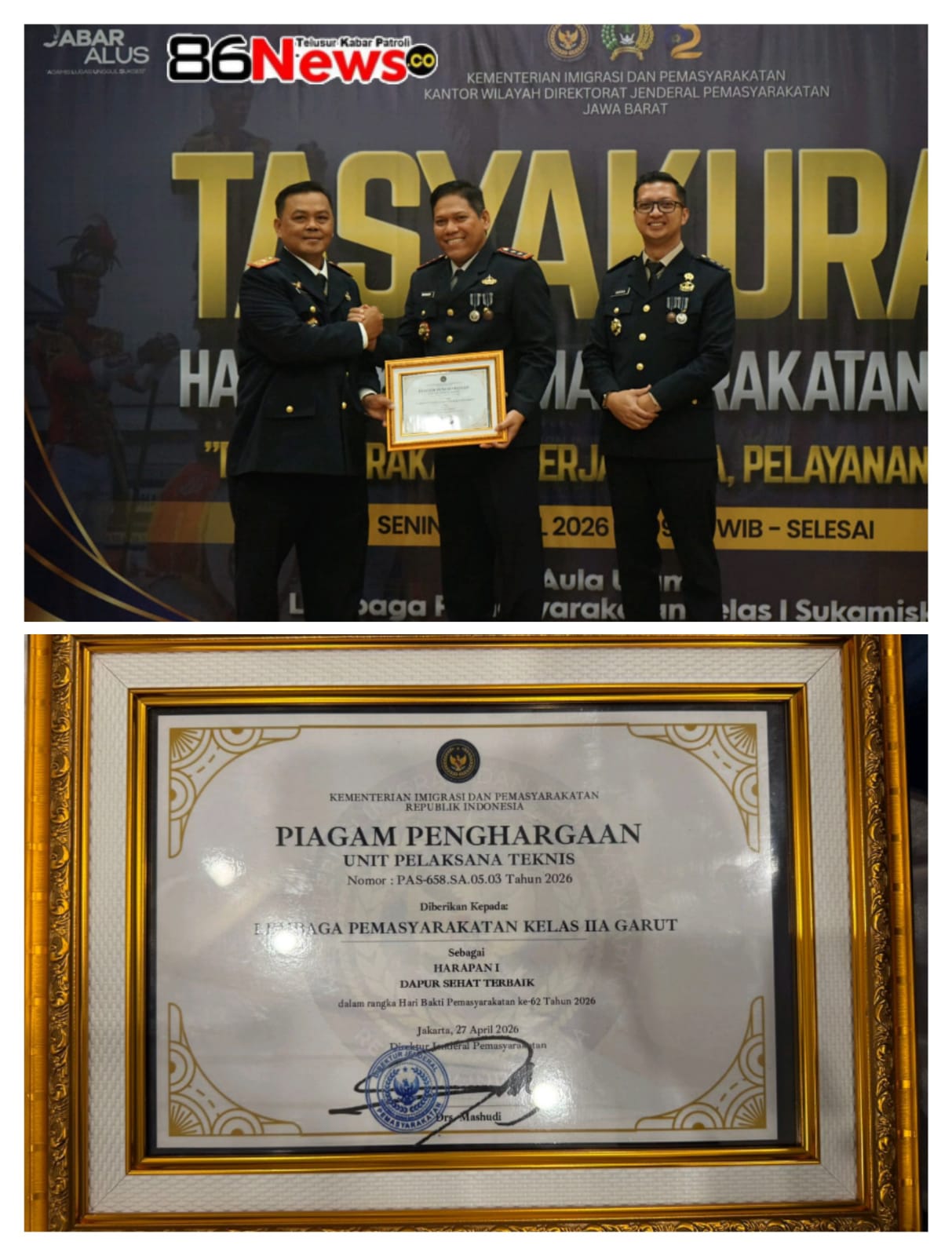 Garut -86News co.- Lembaga Pemasyarakatan (Lapas) Kelas IIA Garut kembali menorehkan prestasi membanggakan dengan meraih Penghargaan Harapan I Dapur Sehat Terbaik dalam rangka Hari Bakti Pemasyarakatan ke-62 Tahun 2026.