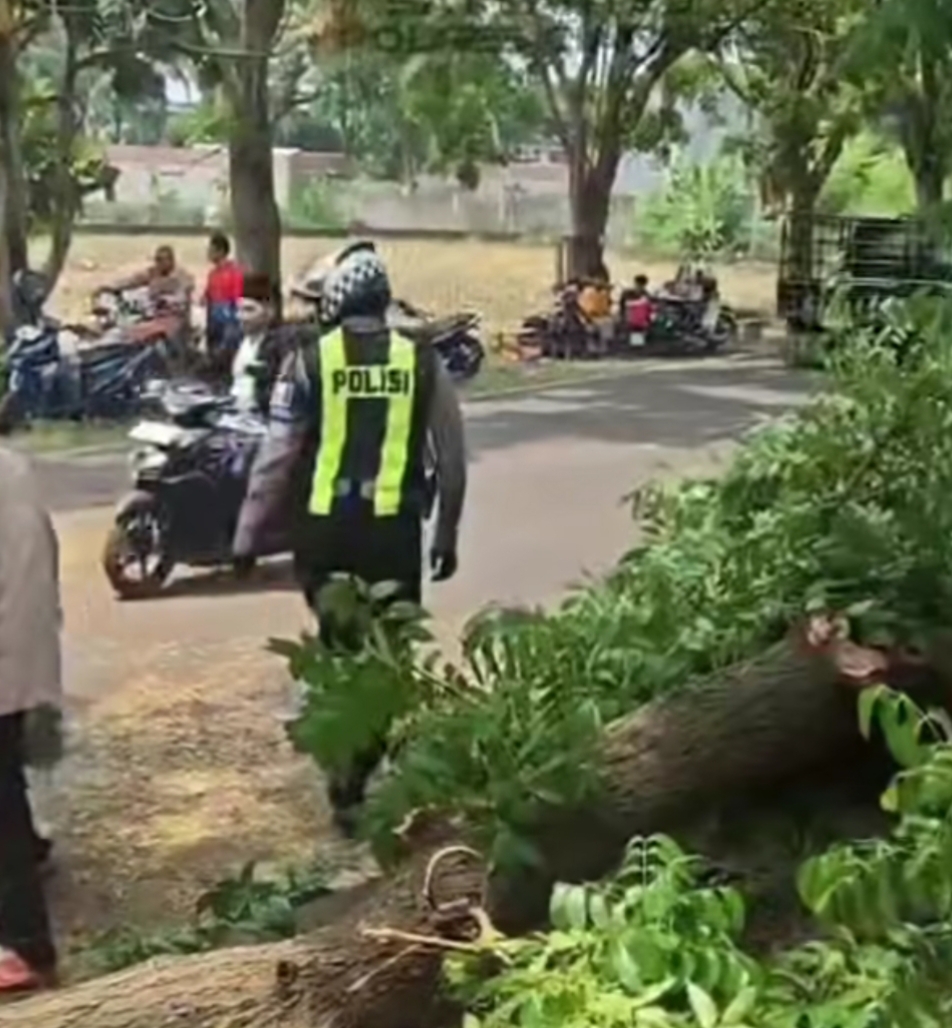 Dalam kegiatan tersebut, personel Satlantas langsung melakukan pengaturan arus kendaraan di sekitar lokasi kejadian, sekaligus melakukan evakuasi batang pohon yang menghalangi badan jalan. Upaya ini menjadi bentuk kesiapsiagaan Polri dalam memberikan pelayanan dan perlindungan kepada masyarakat di situasi darurat.