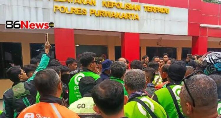 PURWAKARTA -86News co.- Sekitar ratusan pengemudi ojek online (ojol) menggelar aksi unjuk