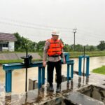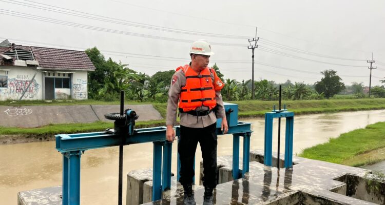 Anggota Kompi 4 Batalyon C Pelopor Laksanakan Pengecekan Debit Air di Pintu Air Gintung Kecamatan Ciwaringin