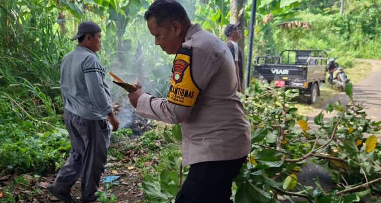 Bhabinkamtibmas Bersama Warga Kerja Bakti Gotong Royong di Kp. Pabuaran